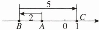 C 【点拨】因为$5.4÷(4+5)=0.6(cm)$,所以数轴上1个单位长度对应的实际长度为0.6cm.因为$1.8÷0.6=3$,所以点B在点A右边,距点A 3个单位长度,所以点B所表示的数b为-2.