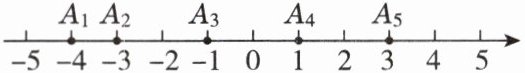 点$A_3$向左移动2个单位长度到达点$A_2$,再向右移动6个单位长度到达点$A_5$.