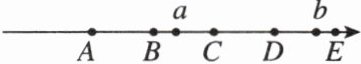 15. 如图,$A$,$B$,$C$,$D$,$E$ 分别是数轴上五个连续整数所对应的点,其中有一个点是原点,数 $a$ 对应的点在 $B$ 与 $C$ 之间,数 $b$ 对应的点在 $D$ 与 $E$ 之间,若 $|a|+|b|= 3$,则原点可能是 (