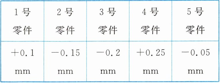 (1)因为|-0.05|<|+0.1|<|-0.15|<|-0.2|<|+0.25|,所以5号零件的大小最符合标准.