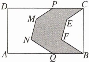 9. 新考法·平移法 如图,长方形ABCD中,AB= 5,BC= 3,在长方形内任取两点E,F,连接CE,EF,FB,得到折线CEFB,点P是CD边上一点,CP= 2,现将折线CEFB沿CP向左平移,得到折线PMNQ,则折线CEFB扫过的区域(阴影部分)的面积是(
