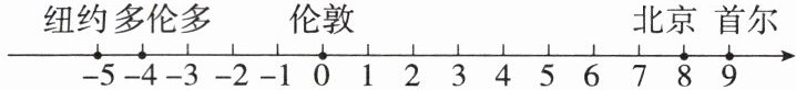 11. 母题 教材 P55 习题 T7 北京等 5 个城市的国际标准时间(单位:h)可在数轴上表示(如图),如果将两地国际标准时间的差简称为时差,那么(