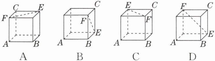 C 【点拨】由题图可知EF所在的面与AB所在的其中一个面相对(EC棱与AB棱平行),且顶点A,E在正方体的同一面上,B,C,F在正方体的同一面上,故选C.