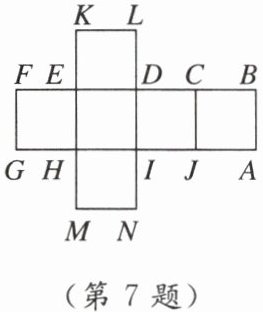 7. 如图表示一个正方体的平面展开图,把它折成一个正方体时,与顶点$K$重合的点是(