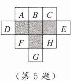 5. [2025·临沂期末]如图所示,其中每个小正方形的大小都相同,有4个涂了阴影,另外8个都标了字母,若从标了字母的8个小正方形中抽出一个,则能和4个阴影小正方形一起折成一个无盖的正方体盒子的共有(