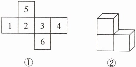 9. 母题教材P14习题T2一个不透明小立方块的六个面上分别标有数字1,2,3,4,5,6,其展开图如图①所示.在一张不透明的桌子上,按图②方式将三个这样的小立方块搭成一个几何体,则该几何体能看得到的面上的数字之和最小是(