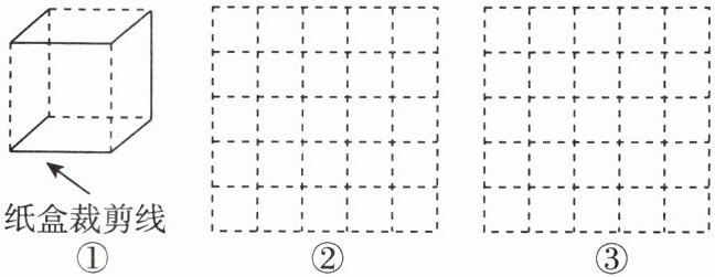 (3)图①中正方体纸盒的裁剪线如图中实线所示,请将其展开图画在图③的方格图中(用阴影表示).