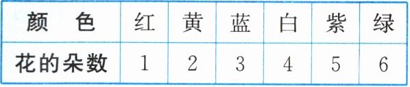 13. 把立方体的六个面分别涂上六种不同的颜色,并画上朵数不等的花,各面上的颜色与花的朵数情况列表如下:
