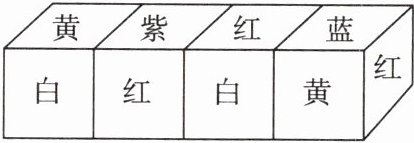【解】由题图可知,立方体中与红色的面相邻的面的颜色有紫、白、蓝、黄,则红色的面所对的面为绿色,记为“红-绿”,同理可得“黄-紫”,“蓝-白”,所以长方体的下底面颜色从左到右依次为紫、黄、绿、白,则花的朵数为5+2+6+4=17,所以长方体的下底面共有17朵花。