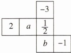 11. [新趋势学科内综合]如图是正方体纸盒的表面展开图,纸面上写有数字和字母,其中$a$与其对面的数互为相反数,$b$与其对面的数互为倒数。