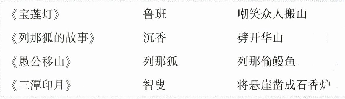 2. 将下面的民间故事名称与相应的人物、情节用线连起来。