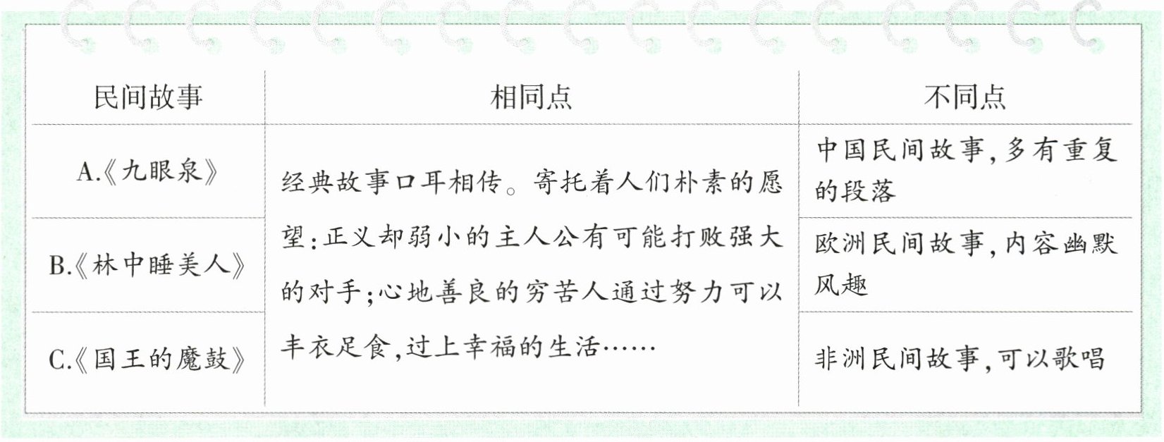 (2)中国民间故事寄托着人们朴素美好的愿望,故事中多有重复的段落。(