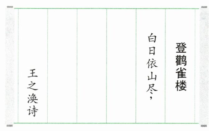 1. 每一行诗句都居中写,注意上下、左右文字要对齐。 (