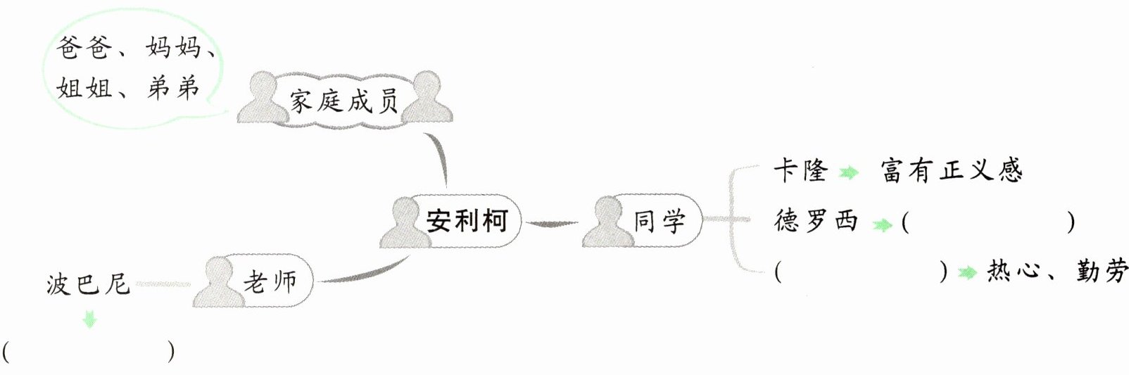 四 阅读《爱的教育》后,状状绘制了主要人物关系图,请你帮他补充完整。