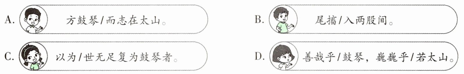 四 (新情境)同学们正在进行配乐朗诵古文的排练,朗读节奏有误的是(