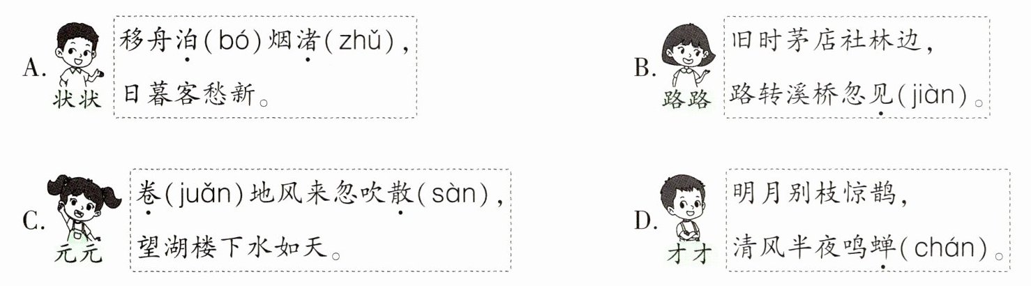 2.(新角度)观察右图,写出《宿建德江》中对应的诗句,完成练习。
