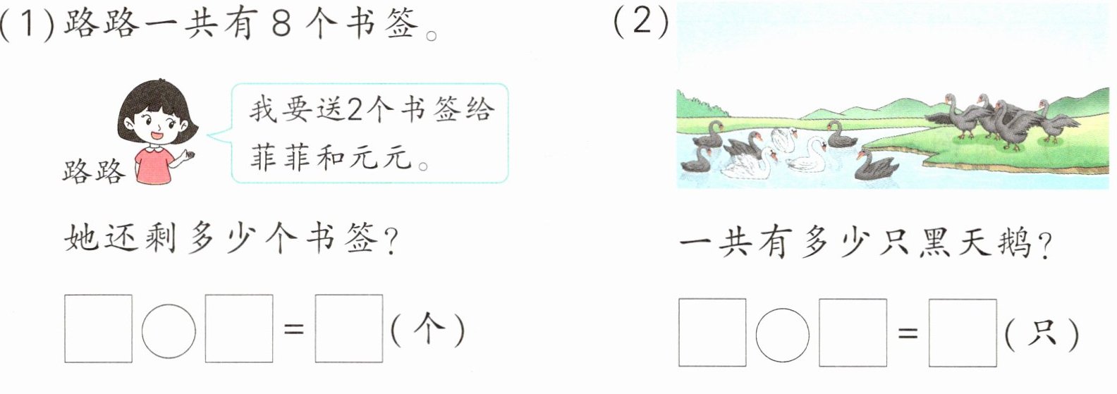 看图提出一个用加法解决的问题和一个用减法解决的问题。
