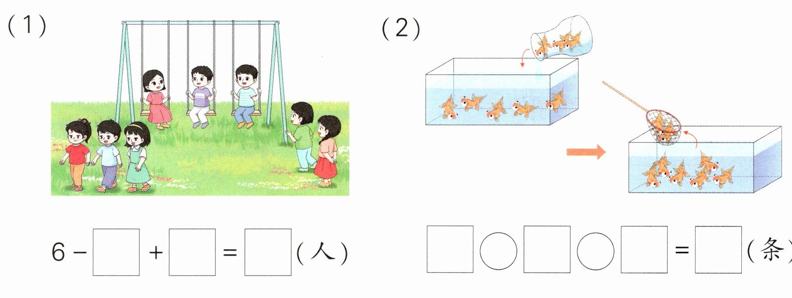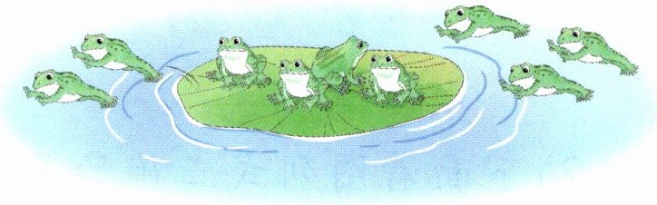 )。①“$6$”$\overset{biǎo shì yuán lái yǒu 6 zhī qīng wā}{表示 原 来 有 6 只 青 蛙}$