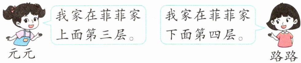 ○元元家 7○○○菲菲家○○○○路路家【解析】根据描述,先画出图形,再数出元元家在路路家上面第几层。