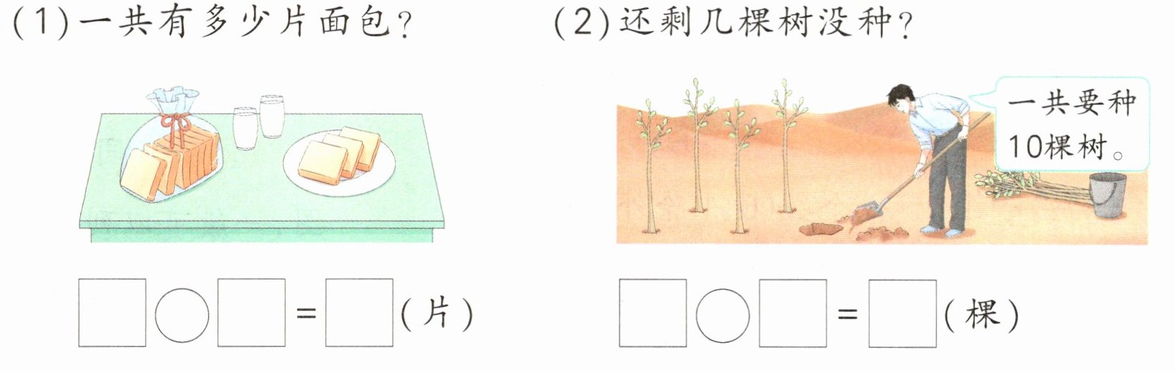 3. 想一想下面三幅图的意思,再用算式表示出来。