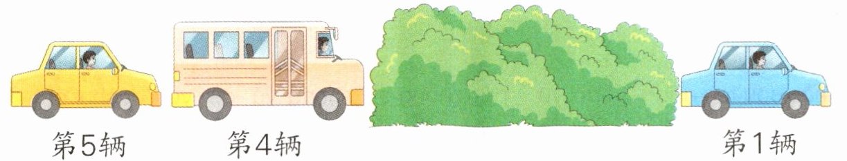 (1)1~5 按从小到大的顺序排列是1、2、3、4、5,可以看出树丛挡住了第2辆和第3辆车,共2辆。