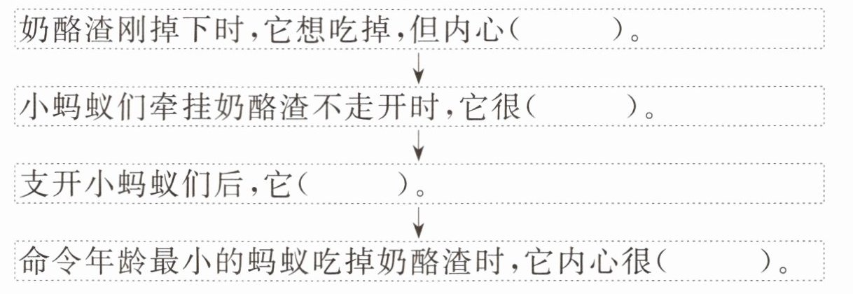 四 读课文,梳理蚂蚁队长的心理变化,选择正确的答案填入括号里。(填序号)