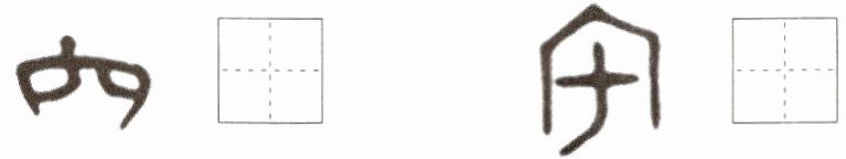 1. 根据字形猜一猜古文字对应的现代汉字,写在田字格里,并填空。
