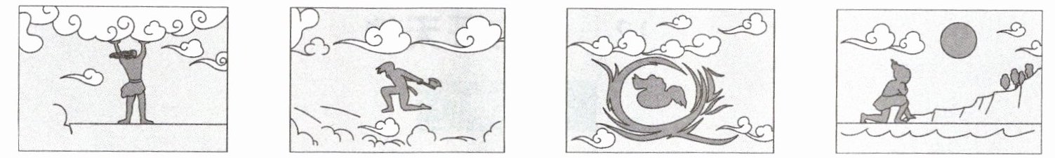 四 根据盘古开天地的过程,照样子给下面几张图片拟写小标题并排序。