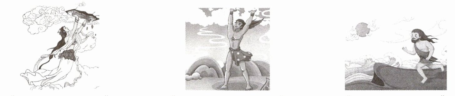 1. 第一小组搜集了三张图片,准备结合图片来分享。一起来看一看,写出图片对应的神话故事吧。