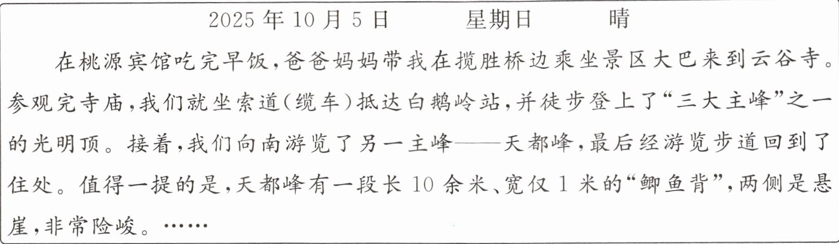 2. 小语来到天都峰的“鲫鱼背”前,会怎么想?怎么做?请你将省略号内容补充完整。______