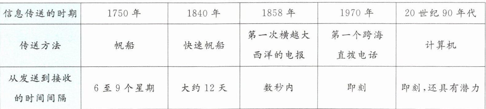 根据表格内容,用一两句话概括信息传送发展的特点:
