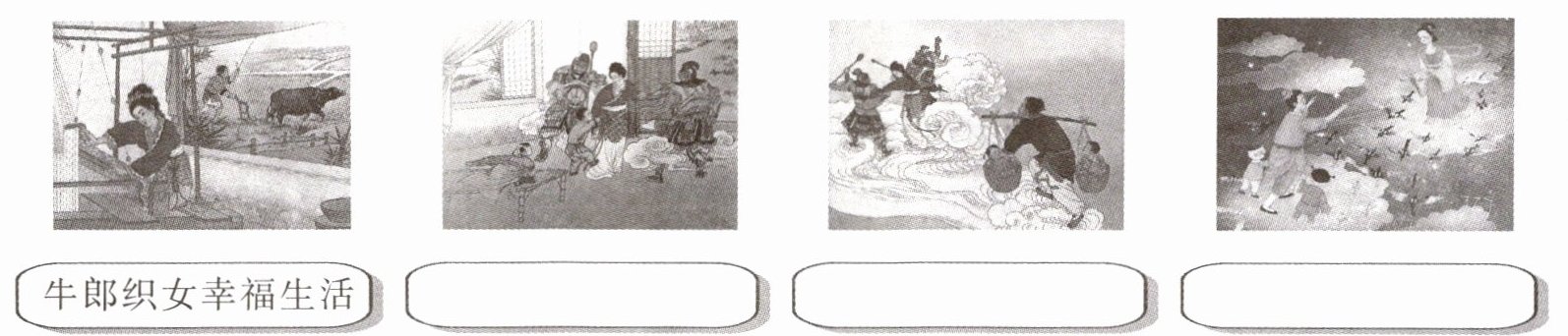 四 结合《牛郎织女》的故事,给下列情节排序(填序号),并结合课文简要概括故事的内容。