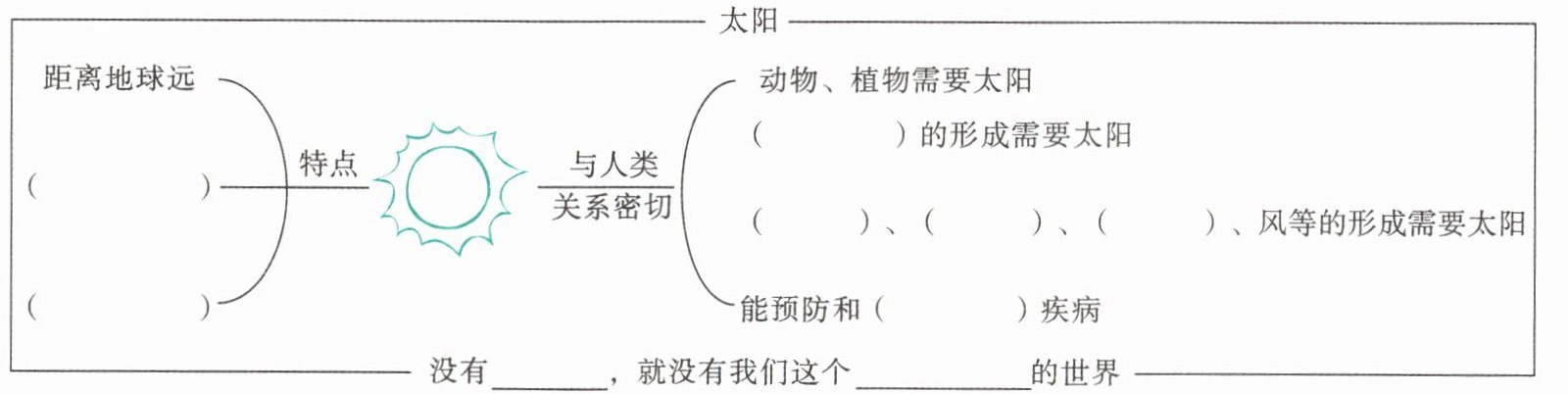 故答案依次为:体积大;温度高;煤炭;云;雨;雪;治疗;太阳;美丽可爱。