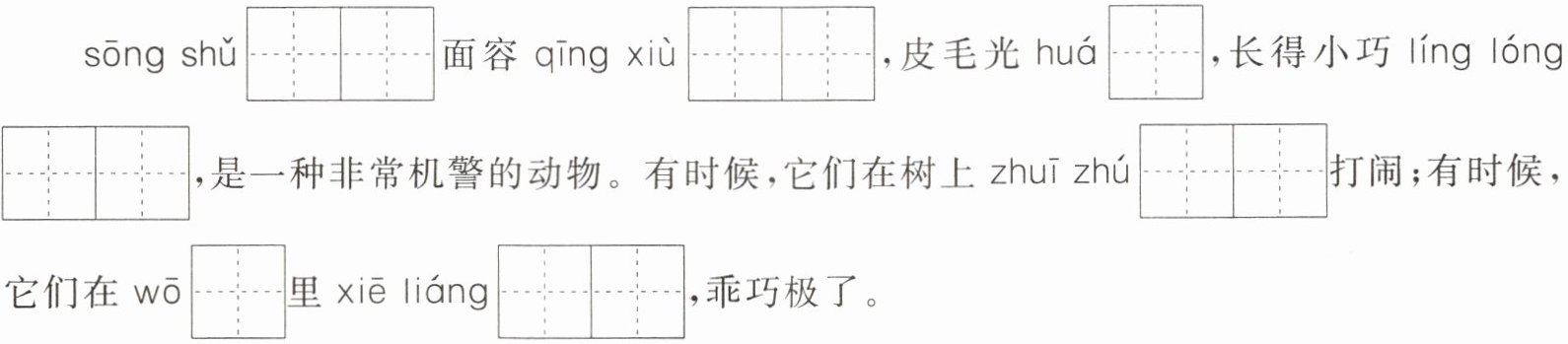 二、松鼠 清秀 滑 玲珑 追逐 窝 歇凉