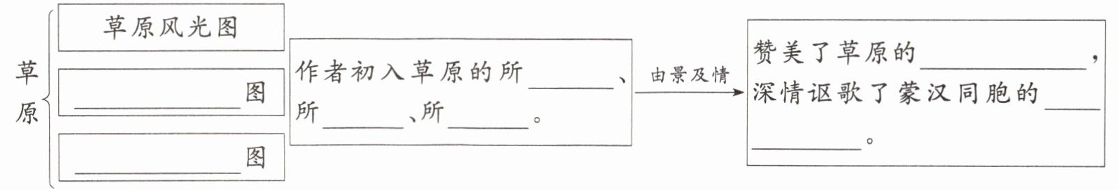 ,生动地写出草原上的河水清澈蜿蜒的样子。(2) 运用同样的修辞手法将句子补充完整。