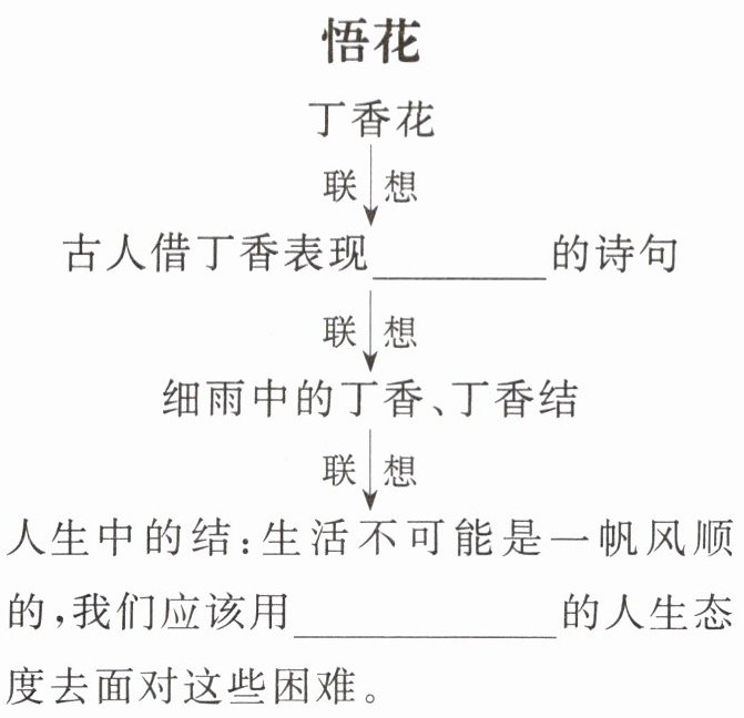 1. 小小的花苞圆圆的,鼓鼓的,恰如衣襟上的盘花扣。2. 解不开的愁怨 惜别、思乡 坚韧不拔3. C