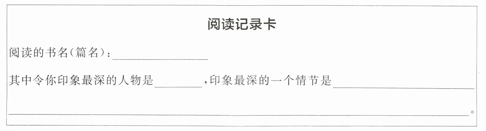 三 阅读实践。 请你从自己本学期课外阅读的作品中选择一本(篇),结合作品内容,完成下面的阅读记录卡。