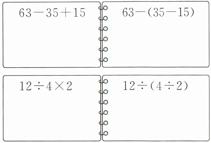 六 毛毛在计算“$24 - □ ÷ 3$”时,弄错了运算顺序,先算减法再算除法了,结果得数是 3。正确的得数应该是多少?