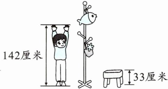 142+33=175(厘米) 17分米=170厘米 175>170 答:可以站在凳子上把小鱼拿下来。
