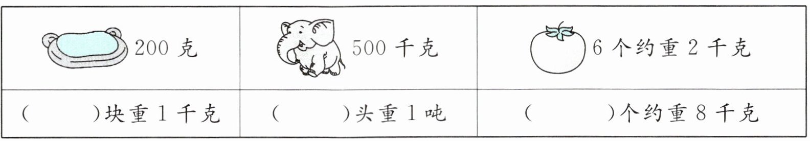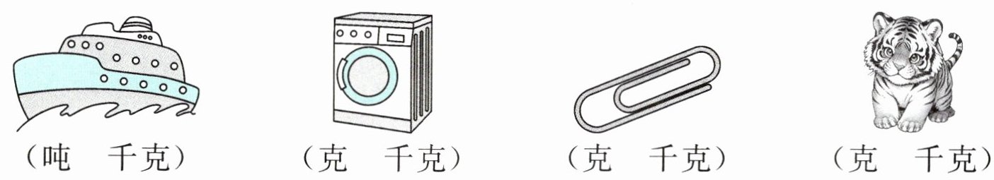 一 计量下面的物品有多重,用哪个单位合适?(在正确的下面打“√”)
