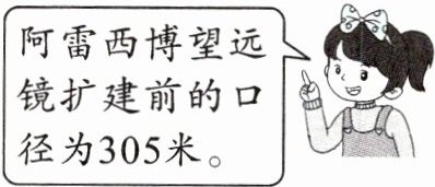 六 [新素材]“中国天眼”是世界上最大的单口径射电望远镜。它的口径比阿雷西博望远镜扩建前口径的2倍少110米,“中国天眼”的口径是多少米?