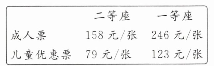 三 我国铁路实施新规,年满 6 周岁且未满 14 周岁的儿童可以购买优惠票。爸爸妈妈和贝贝(12 周岁)坐高铁回家,买票至少要花多少钱?