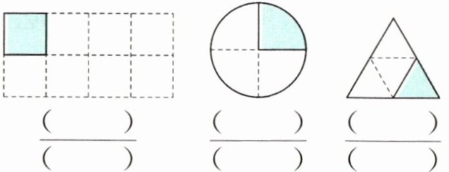 一 先把各图中的涂色部分用分数表示出来,再读一读。