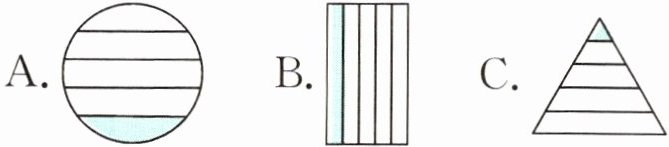 1. 下图中,可以用$\frac{1}{5}$表示涂色部分的是(