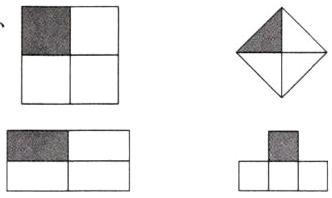 四 涂色表示下面每个图形的$\frac{1}{4}$。