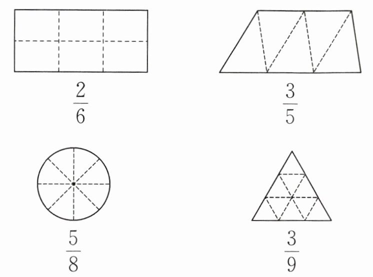 4 $\frac{3}{4}$ $\frac{1}{6}$ $\frac{4}{6}$ $\frac{5}{8}$ 八分之五 $\frac{3}{8}$ 3
