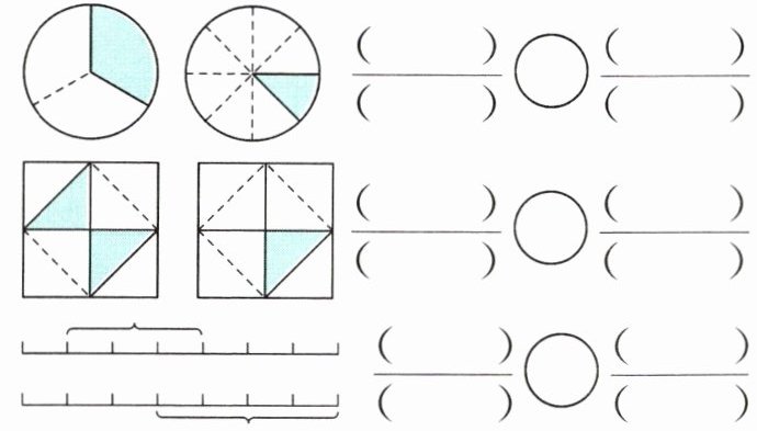 $\frac{1}{3}>\frac{1}{8}$ $\frac{2}{8}>\frac{1}{8}$ $\frac{3}{7}<\frac{4}{7}$