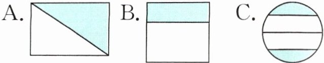 2. 下面图中的涂色部分,占整个图形$\dfrac{1}{2}$的是(
