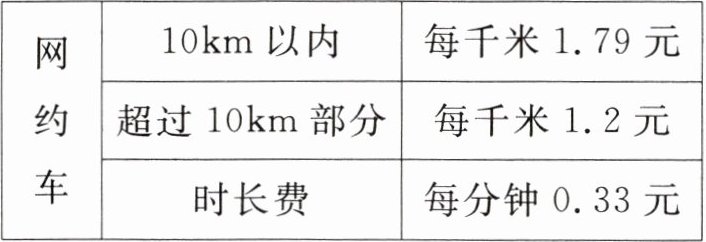 六 中午,王叔叔要去 $12km$ 外的车站接人,单趟耗时大约 $15$ 分钟(来回用时相同,接人后不换车),王叔叔打算乘坐网约车。收费标准如下。