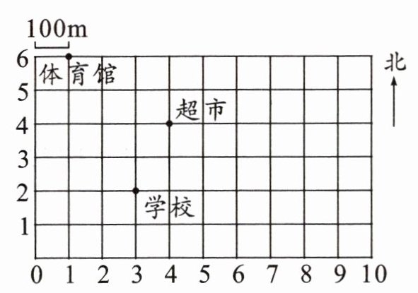 1. 用数对表示超市的位置是( , ),学校的位置是( , )。